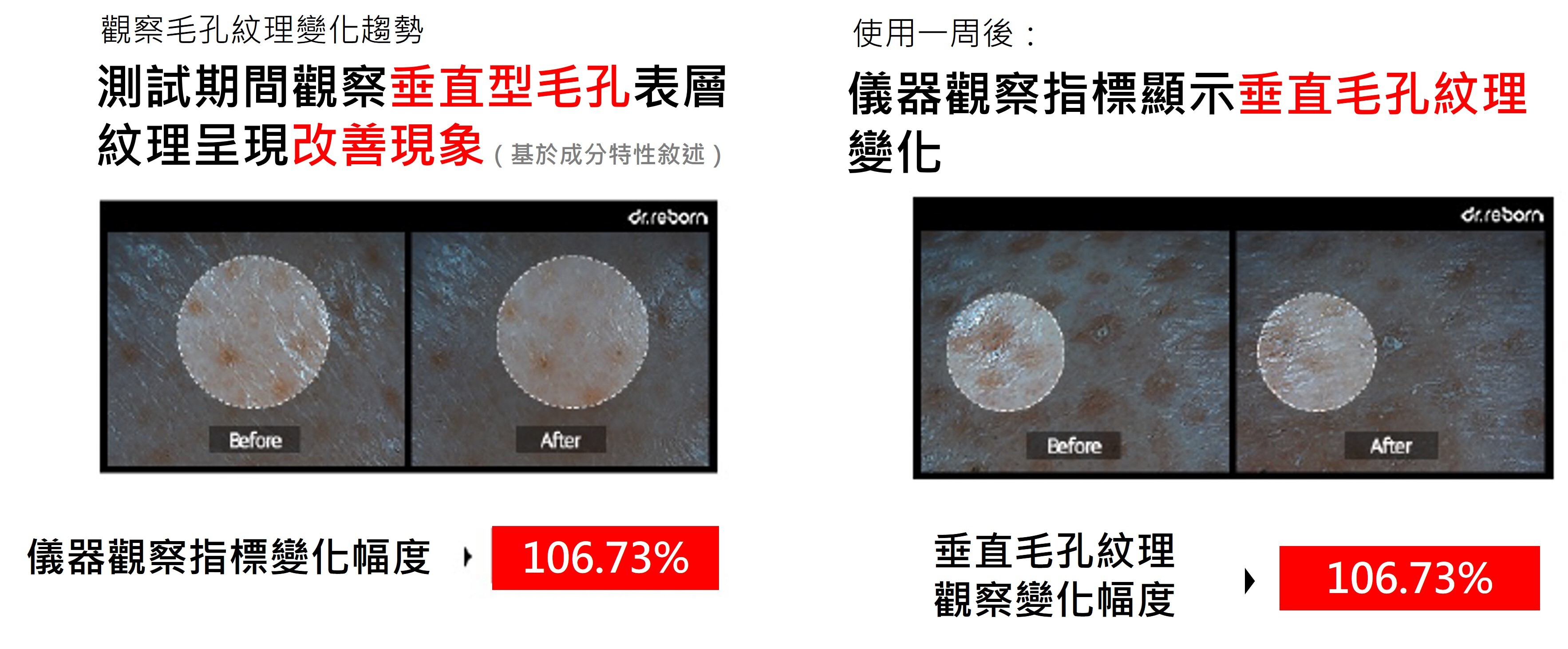 使用一週後,肌膚紋理、毛孔平滑度與下顎線緊緻度皆有顯著提升: