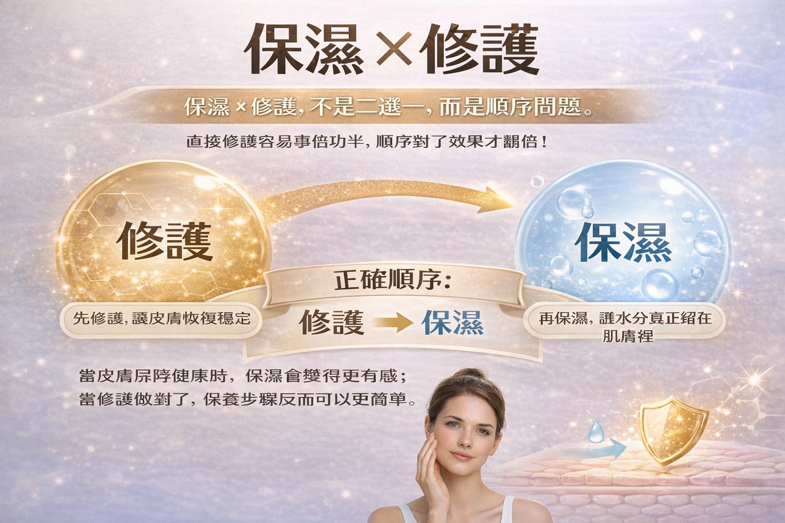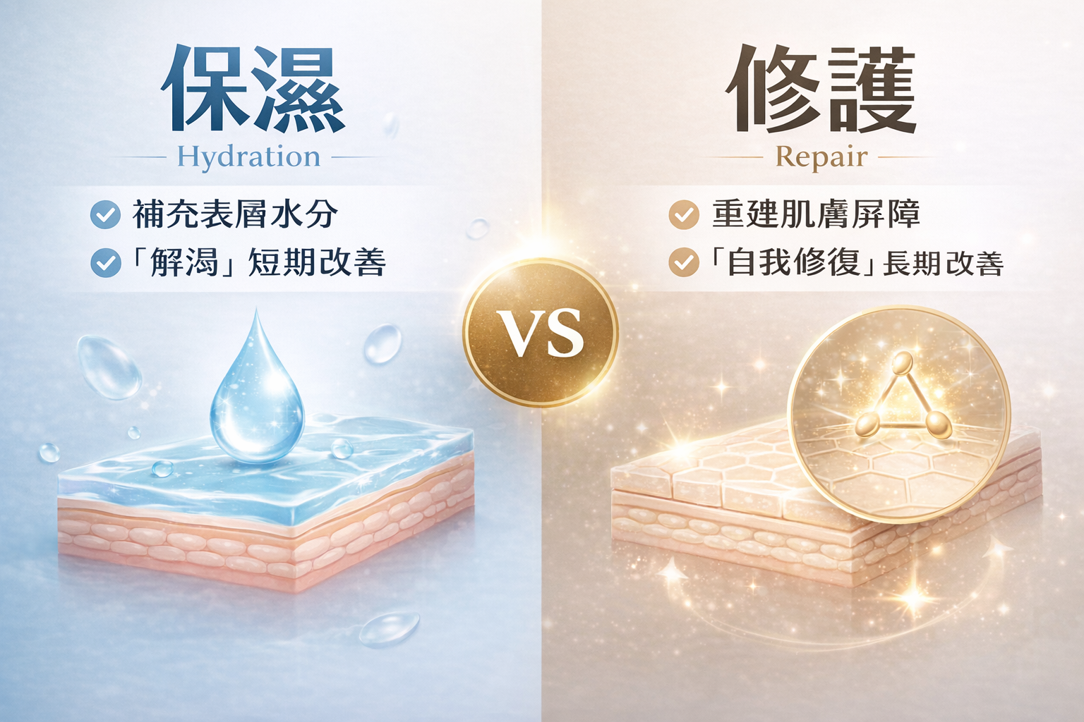 👉 簡單說:保濕是「補充資源」,修護是「修好結構」。