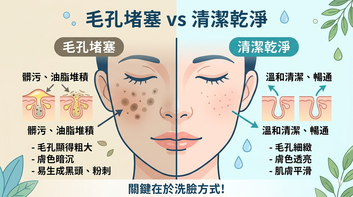 過度清潔 → 皮膚屏障受影響 → 出油增加 → 毛孔更明顯