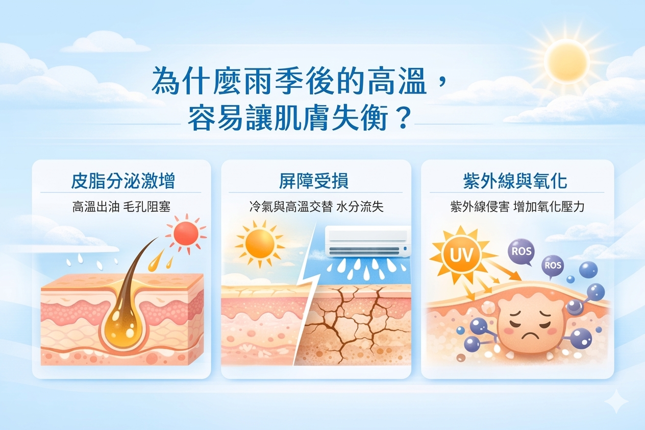 其實,問題往往不是「下雨」,而是雨後高溫帶來的肌膚環境變化。